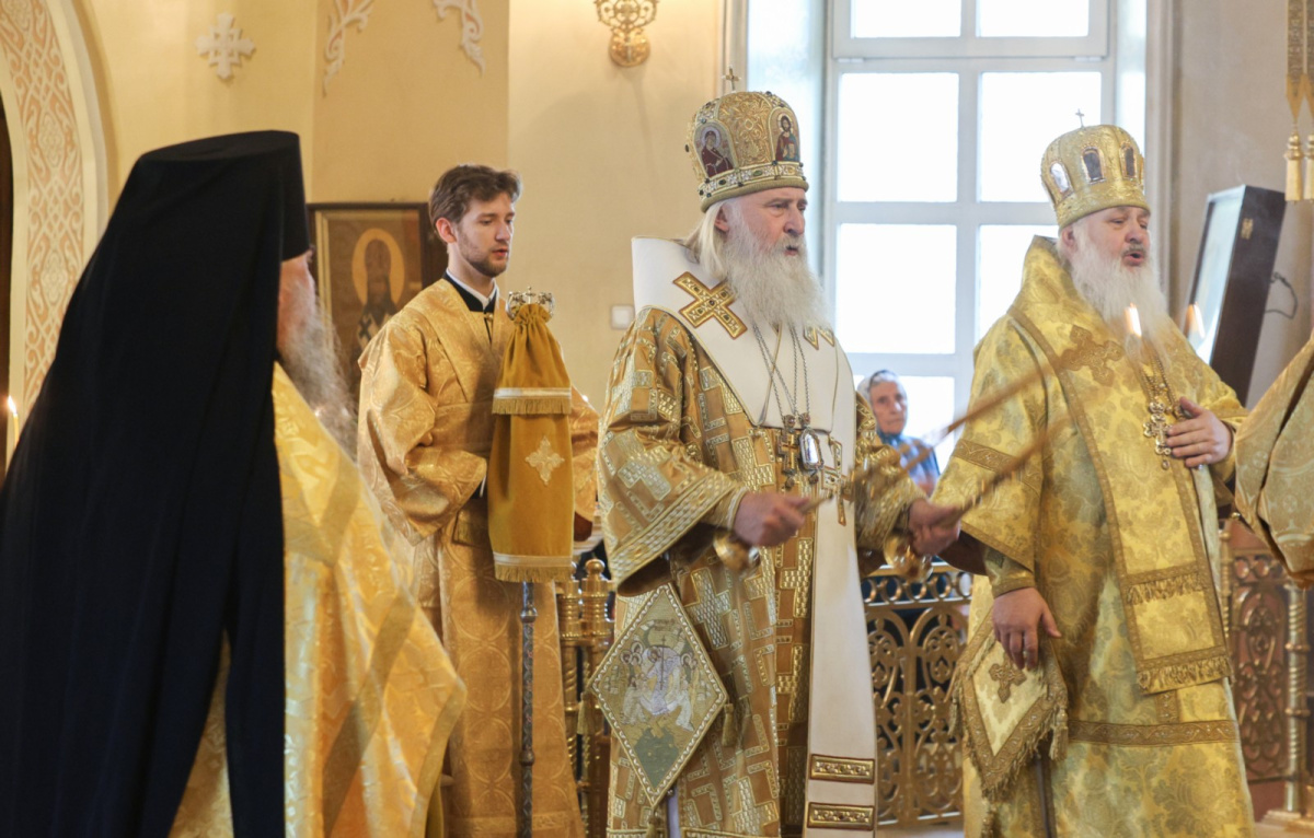 Его Высокопреосвященству сослужили наместник Екатерининского монастыря епископ Видновский Тихон, настоятель храма в честь святого великомученика Георгия Победоносца в г. Видное протоиерей Михаил Егоров, братия обители в священном сане.