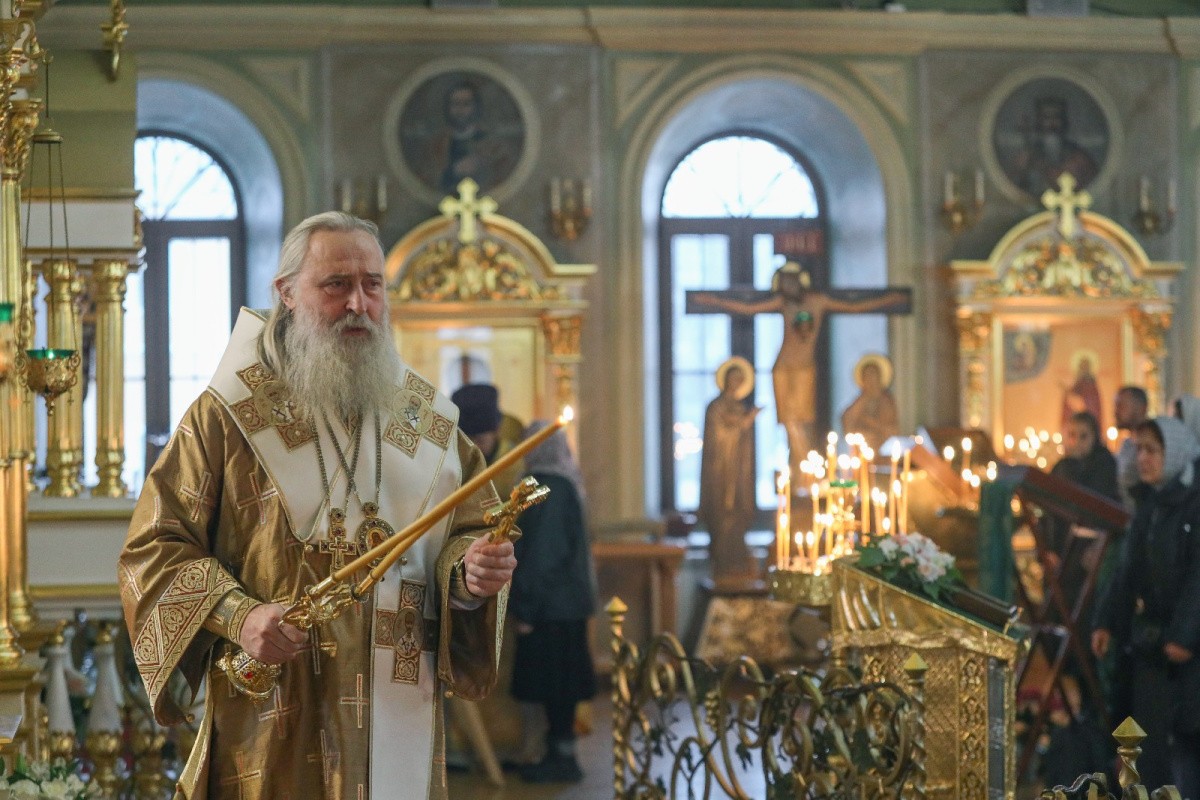 Его Высокопреосвященству сослужили клирики монастыря.
