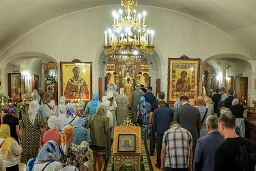 За Литургией молились настоятельница Свято-Троицкого Александро-Невского ставропигиального женского монастыря игумения Антония (Минина) с сестрами, настоятельница Никольского Шостьенского ставропигиального женского монастыря игумения Неонилла (Фролова) с сестрами, насельники и прихожане обители.