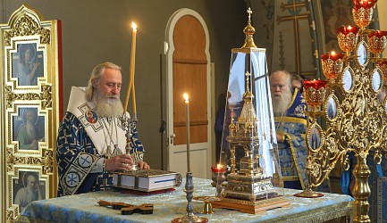 Перед Божественной литургией, по традиции престольного праздника, был совершен водосвятный молебен.