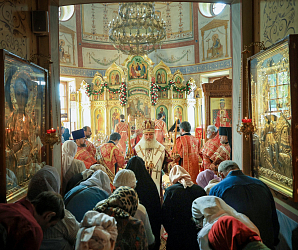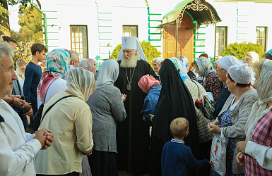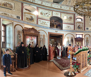 За Божественной литургией Его Высокопреосвященству сослужили клирики обители и приглашенное духовенство.