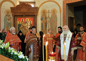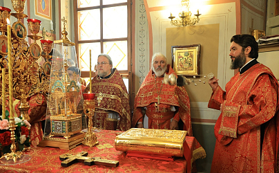 Накануне было отслужено всенощное бдение с акафистным пением святым князьям-страстотерпцам Борису и Глебу в посвященном им приделе.
