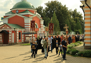 По окончании Литургии был совершен крестный ход с мощами святых покровителей монастыря.