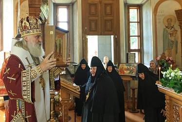 Игумения Мария поблагодарила архипастыря за внимание и любовь к обители и преподнесла ему в дар о памятном дне икону святых князей Бориса и Глеба.