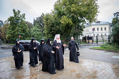 Богослужебные песнопения исполнил хор сестер Зачатьевского монастыря.