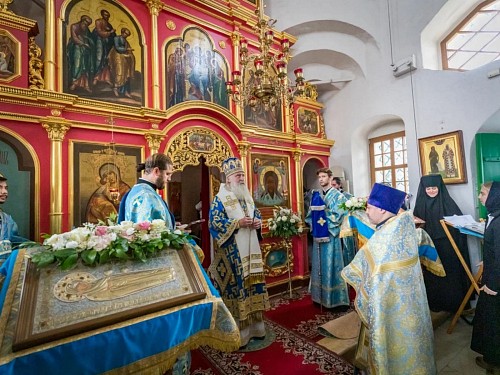 Его Высокопреосвященству сослужили клирики обители.