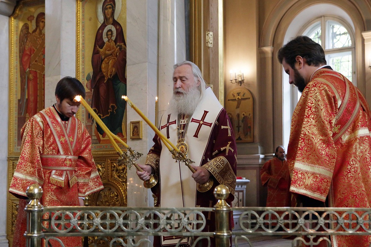 Его Высокопреосвященству сослужили клирики монастыря.