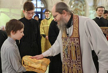 В Литургии вместе с прославленным концертным хором Сретенского монастыря участвовали хор Сретенской духовной академии и Молодежный монастырский хор.