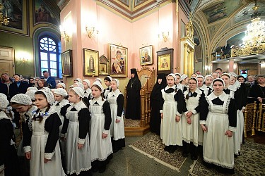 За богослужением молились настоятельница монастыря игумения Феофания (Мискина) с сестрами, воспитанницы монастырского детского приюта, прихожане и паломники.