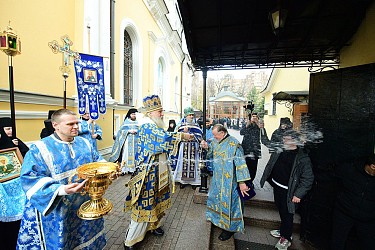 По окончании Литургии состоялся молебен и крестный ход вокруг Воскресенского собора обители. У мощей блаженной Матроны Московской митрополит Феогност прочитал молитву праведной старице. На протяжении всего крестного хода духовенство окропляло многочисленных верующих святой водой.