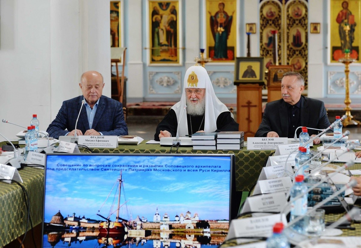 20 августа 2018 года в трапезной Филипповского храма Соловецкого монастыря под председательством Святейшего Патриарха Московского и всея Руси Кирилла состоялось совещание по вопросам сохранения и развития Соловецкого архипелага.