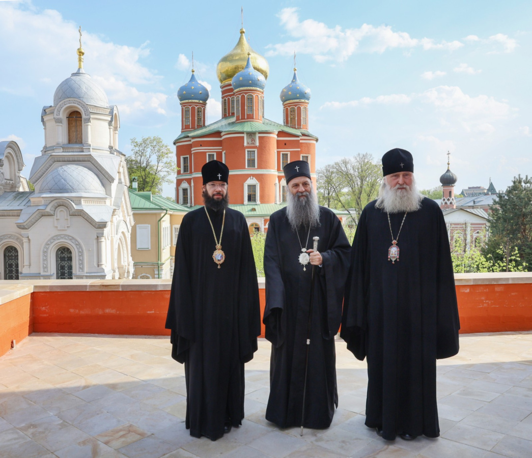 Святейший Патриарх Сербский Порфирий 23 апреля посетил Донской ставропигиальный мужской монастырь г. Москвы. Его Святейшество сопровождали члены делегации Сербской Православной Церкви, прибывшие в Москву.