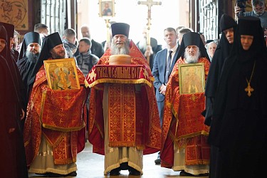 У стен Успенского собора Свято-Троицкой Сергиевой лавры состоялась торжественная встреча сначала Святейшего Патриарха Сербского Порфирия, затем Святейшего Патриарха Кирилла. Предстоятелей встречали наместник Лавры епископ Сергиево-Посадский и Дмитровский Кирилл и глава Сергиево-Посадского городского округа Московской области О.В. Ероханова, в соборе – архиереи и духовенство Русской и Сербской Православных Церквей.