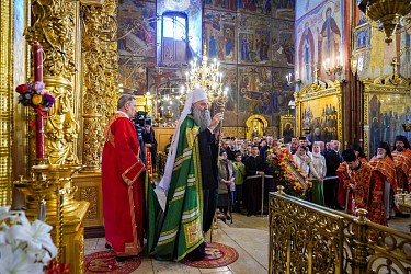 По окончании Литургии епископ Сергиево-Посадский и Дмитровский Кирилл от лица братии Лавры приветствовал Предстоятелей Русской и Сербской Православных Церквей. Святейшему Патриарху Кириллу епископ Кирилл преподнес картину с изображением Лавры, созданную членом Союза художников России А.С. Горбуновым, Святейшему Патриарху Порфирию – икону преподобного Сергия Радонежского.