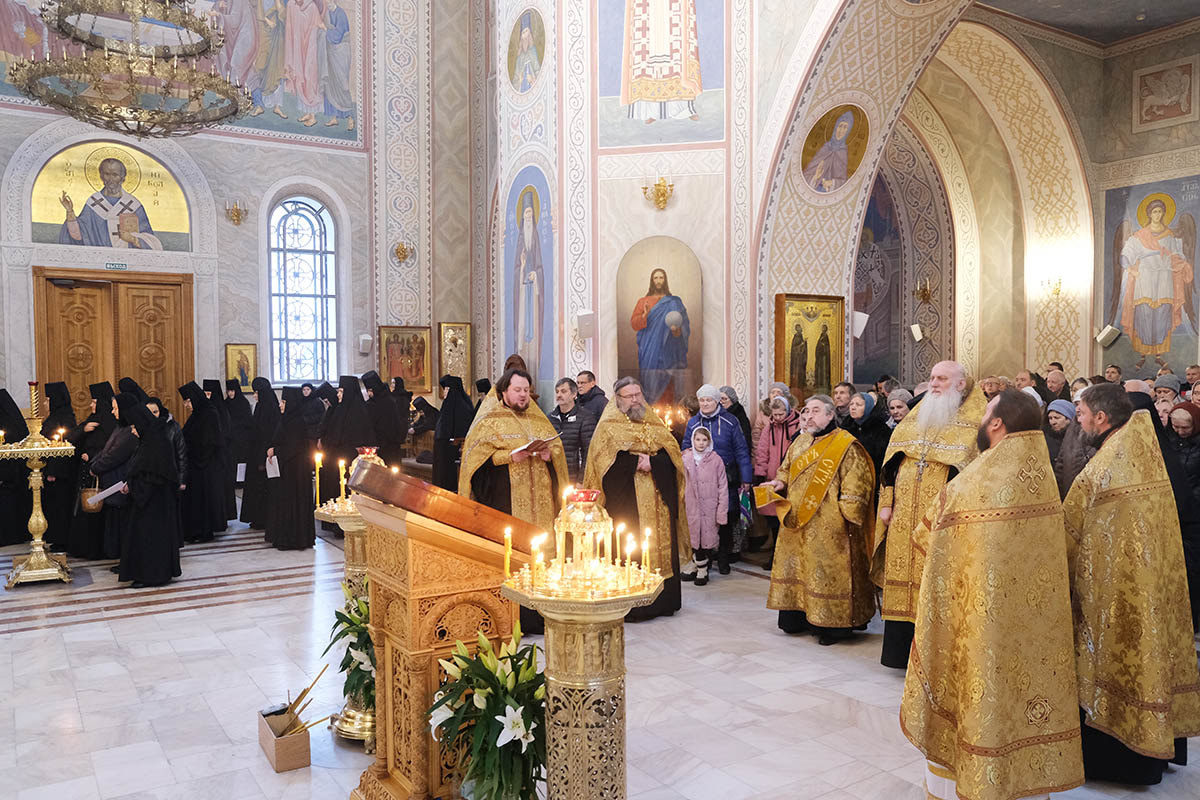 В день праздника были совершены две Божественные литургии: ранняя в Покровском соборе и поздняя в Никольском соборе монастыря.