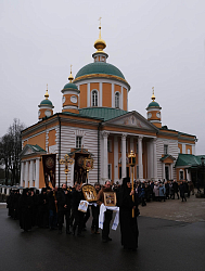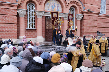 После причащения Святых Христовых Таин был отслужен праздничный молебен с крестным ходом вокруг Никольского собора.