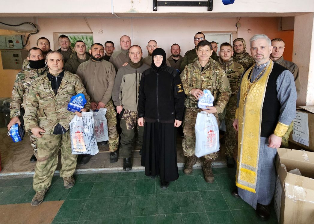 За короткое время они успели посетить несколько мест. И первым пунктом был отряд специального назначения «Скиф», где служит сотрудник Крестовоздвиженской Иерусалимской обители. Был отслужен молебен. Силами прихожан ребятам передали: ноутбук, пульты управления, дисковую пилу и фрезер, обогреватели теплэко, боевые костюмы, термобелье, духовные аптечки, мультитулы, продукты питания, медикаменты, согрелки и, конечно, сладкие рождественские подарки.