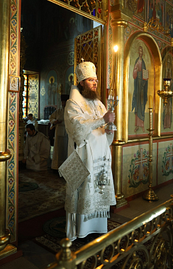 Прощание с новопреставленным архиереем началось с Литургии Преждеосвященных Даров. Богослужение совершил председатель Синодального отдела по монастырям и монашеству митрополит Каширский Феогност. Его Высокопреосвященству сослужил наместник Троице-Сергиевой лавры епископ Сергиево-Посадский и Дмитровский Фома.