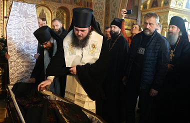 На заупокойном богослужении присутствовали пресс-секретарь Синодального отдела по монастырям и монашеству, настоятель московского подворья Введенского ставропигиального мужского монастыря Оптина пустынь архимандрит Мелхиседек (Артюхин), заместитель председателя Синодального отдела по монастырям и монашеству, настоятельница Зачатьевского ставропигиального женского монастыря Москвы игумения Иулиания (Каледа), духовные чада почившего архиерея.