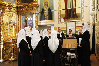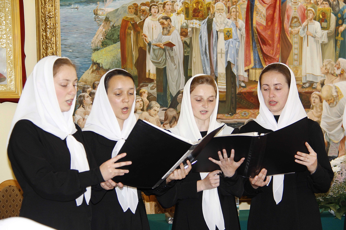 Богослужебные песнопения исполнил хор выпускниц под управлением Ольги Качан.