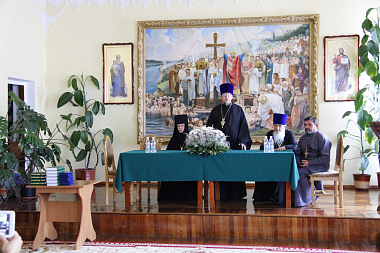 Затем в актовом зале Регентско-катехизаторского Духовного училища состоялся выпускной акт. В начале мероприятия с докладом об успеваемости выпускниц выступил преподаватель училища по общецерковной истории протоиерей Александр Шостак.