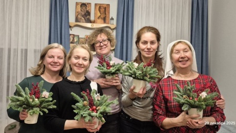 В преддверии Рождества Христова сотрудники и добровольцы Патронажной службы Марфо-Мариинской обители милосердия собрались на мастер-класс по изготовлению праздничных ёлочных композиций для пожилых подопечных.