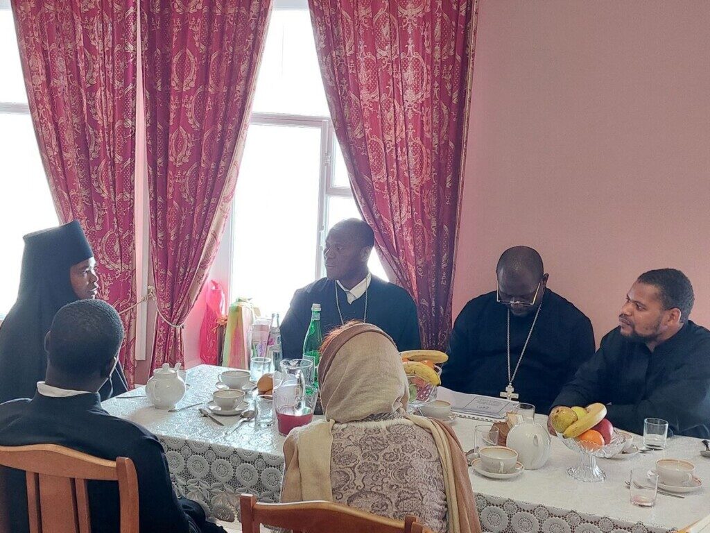 Богослужения совершили священнослужители Патриаршего экзархата Африки иерей Сергий Воемава (ЦАР), иерей Павел Эме (Камерун) и монастырское духовенство.