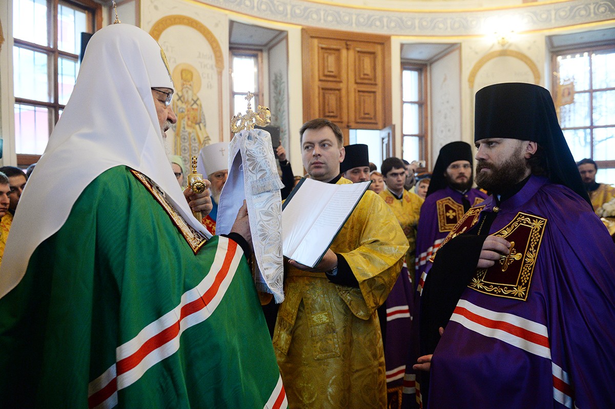 Патриарх Кирилл освятил Троицкий собор Аносина монастыря и совершил в нем Литургию
