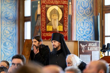 Богослужебные песнопения исполнил братский хор Введенского ставропигиального монастыря Оптина пустынь под управлением иеродиакона Гедеона (Федорова).
