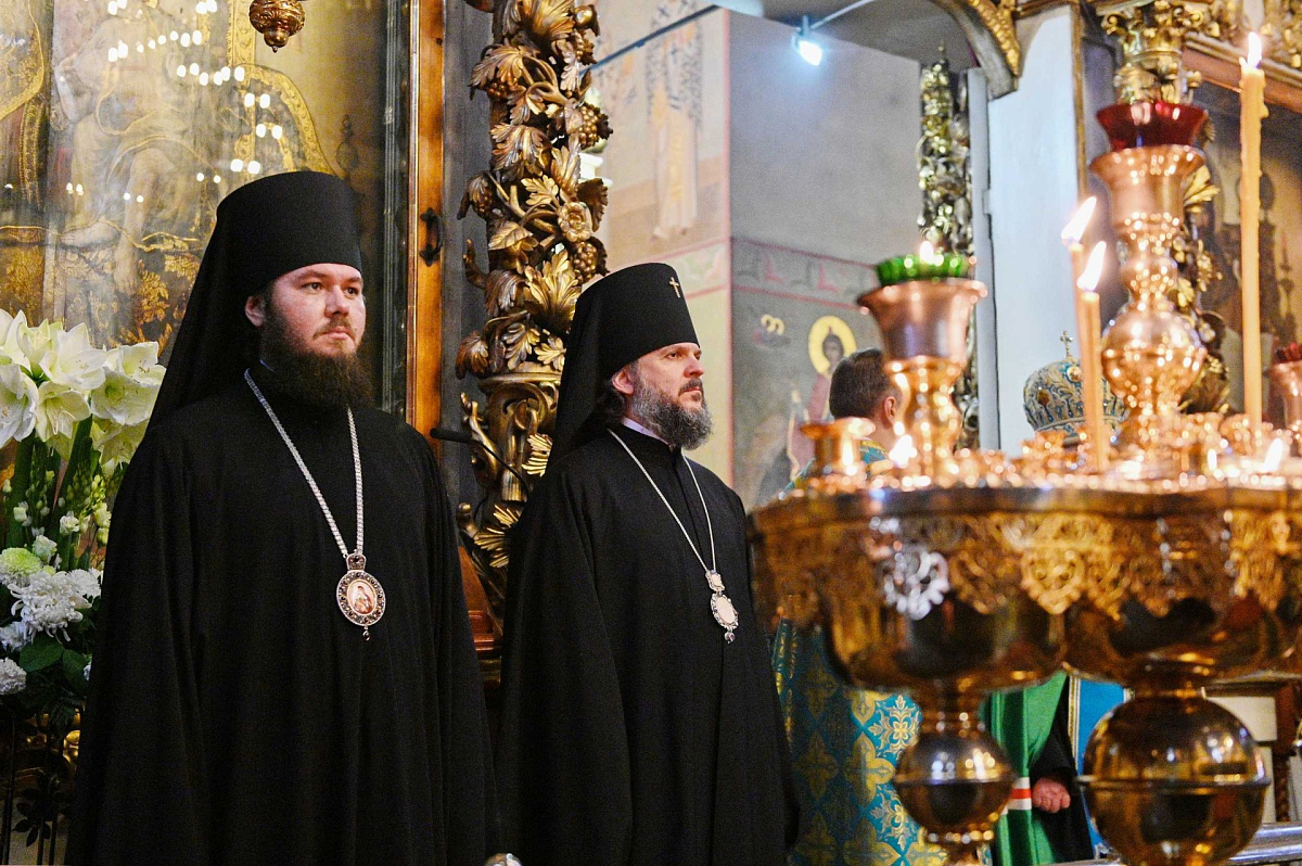 Его Святейшеству сослужили: архиепископ Каширский Феогност, председатель Синодального отдела по монастырям и монашеству; архиепископ Верейский Амвросий, наместник Сретенского ставропигиального монастыря, ректор Сретенской духовной семинарии; епископ Бронницкий Фома, наместник Донского монастыря, первый заместитель председателя Финансово-хозяйственного управления Московского Патриархата; епископ Солнечногорский Алексий, наместник Данилова ставропигиального монастыря; протоиерей Александр Фарковец, благочинный Донского церковного округа г. Москвы; насельники Донской обители в священном сане.