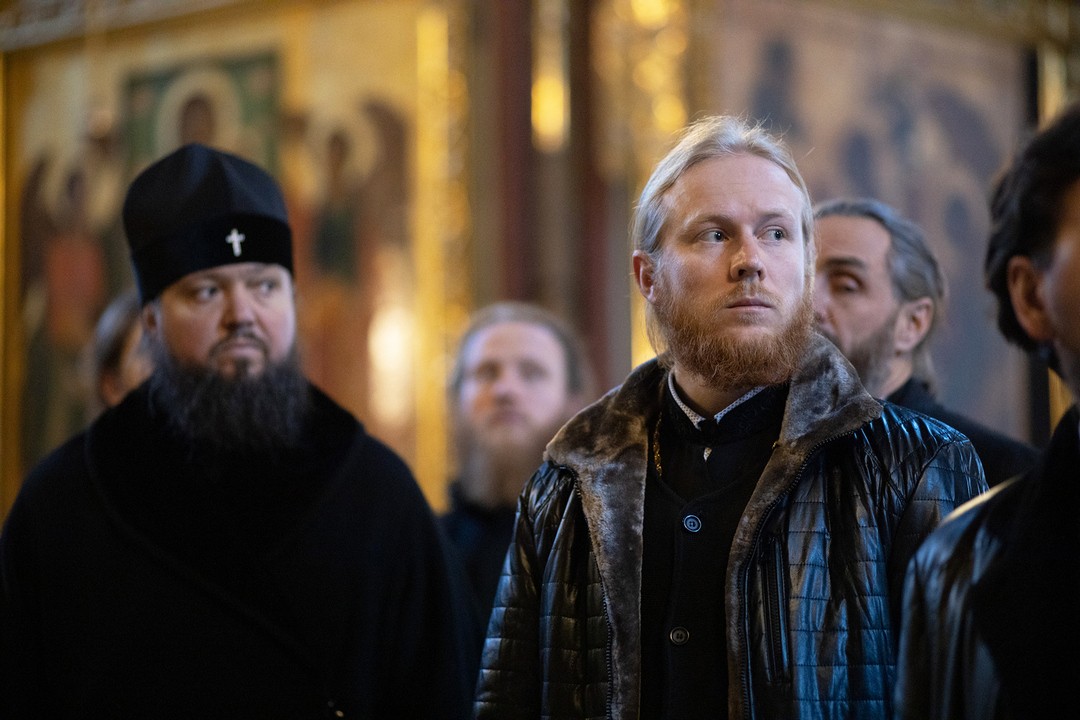 В Троицком соборе гости приложились к мощам преподобного Сергия Радонежского, исполнили величание святому и прошли в Серапионову палату с Никоновским пределом, где иеродиакон Георгий подробно рассказал о собранных в них святынях.