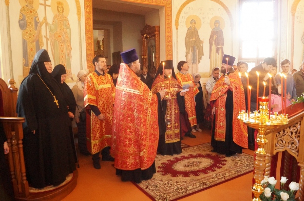 Позднюю Божественную литургию возглавил старший священник обители иеромонах Адриан в сослужении монастырского духовенства. За праздничным богослужением молились сестры Свято-Троицкого Корецкого ставропигиального женского монастыря в сопровождении монастырского священника.