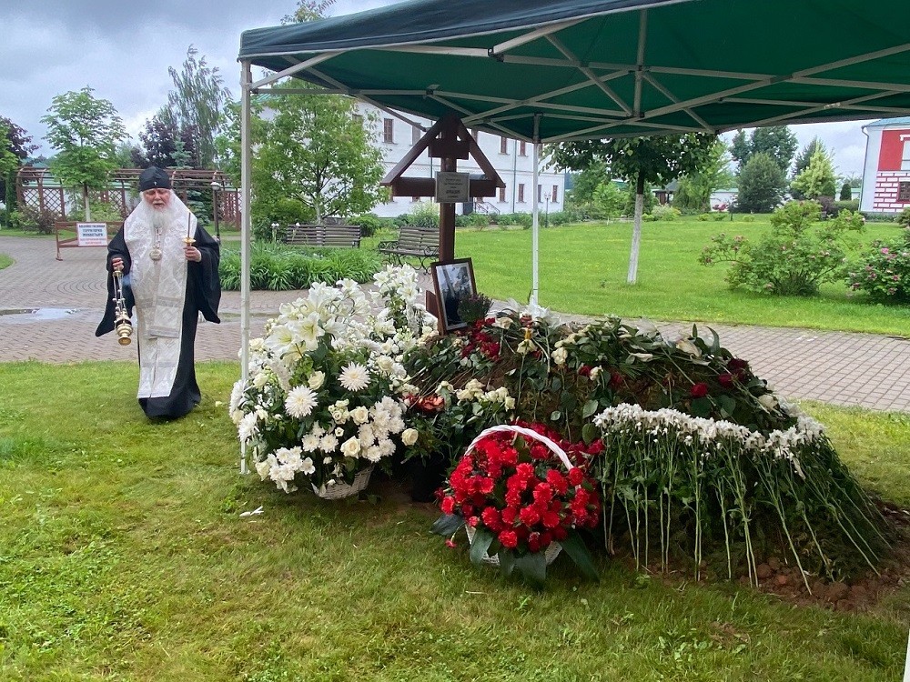 После сказанных добрых слов в адрес новопреставленного на месте его погребения, с правой стороны от Троицкого алтаря главного собора обители, была совершена заупокойная панихида.