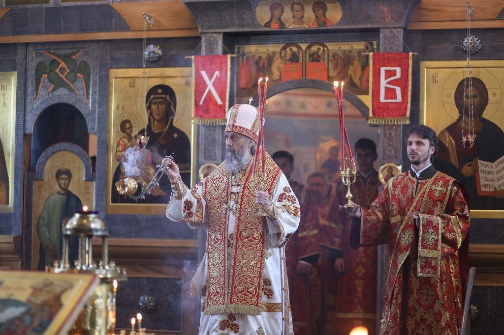 В храме Преподобного Сергия Радонежского Его Святейшество совершил великое повечерие с чтением Великого покаянного канона прп. Андрея Критского.