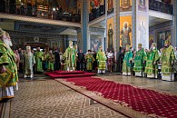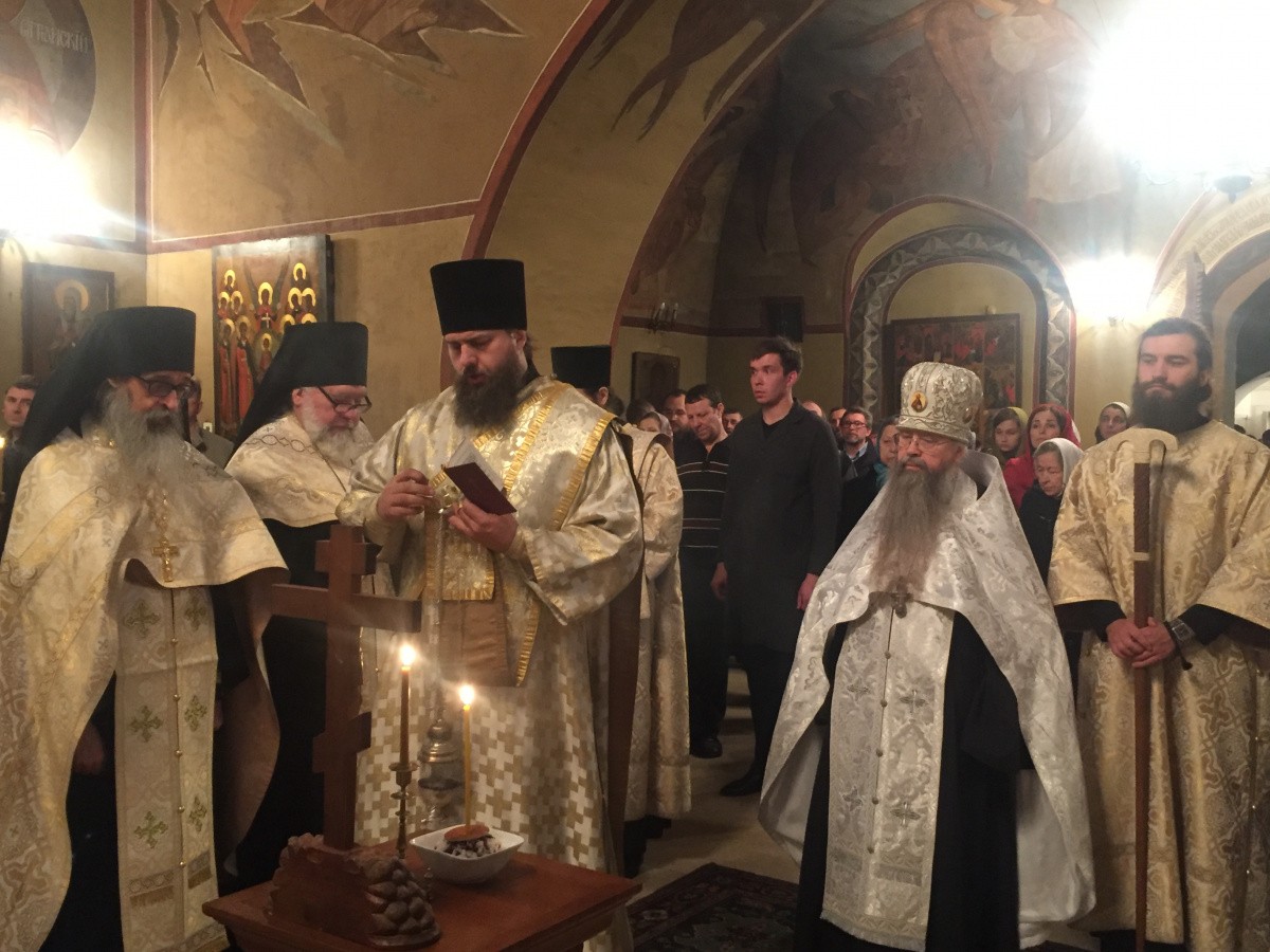 Его Высокопреподобию сослужили насельники обители архимандрит Лука (Пинаев), архимандрит Даниил (Воронин), братия монастыря в священном сане.