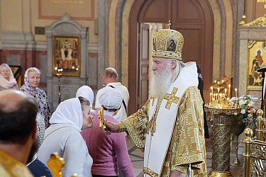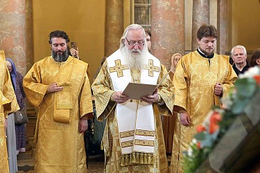По окончании богослужения митрополит Феогност зачитал Патриаршее поздравление по случаю 25-летия возобновления иноческой жизни в Иоанно-Предтеченском ставропигиальном монастыре.