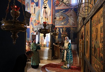 Его Высокопреосвященству сослужили наместник Николо-Угрешского монастыря архимандрит Мефодий (Зинковский), братия обители в священном сане.