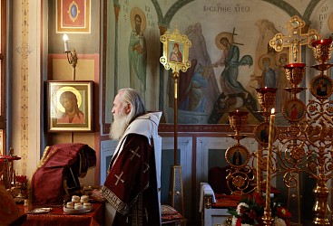 За Божественной литургией Его Высокопреосвященству сослужили клирики обители и приглашенное духовенство.