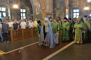 В храме в честь Введения во храм Пресвятой Богородицы Его Высокопреосвященству сослужили наместник Оптиной пустыни епископ Можайский Иосиф, епископ Козельский и Людиновский Макарий, братия обители в священном сане, представители духовенства Калужской и Козельской епархий.