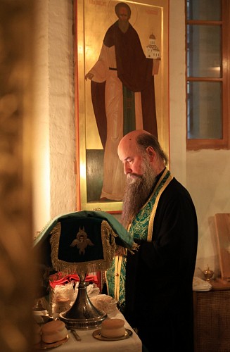 По окончании Литургии было совершено славление преподобному Никону Радонежскому перед ракой с его честными мощами, которая находится в Никоновском приделе Троицкого собора.