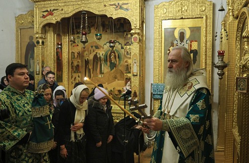 За богослужением молились епископ Троицкий и Южноуральский Павел, настоятельница Никольского женского монастыря Донецкой епархии игумения Анна (Морозова), прихожане и паломники.