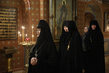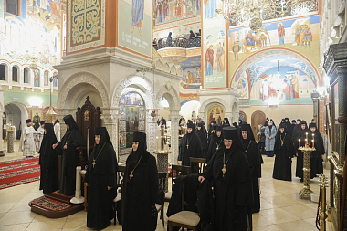 За Литургией молились участники заседания монашеского направления XXXI Международных Рождественских образовательных чтений ‒ игумены и игумении, насельники монастырей.