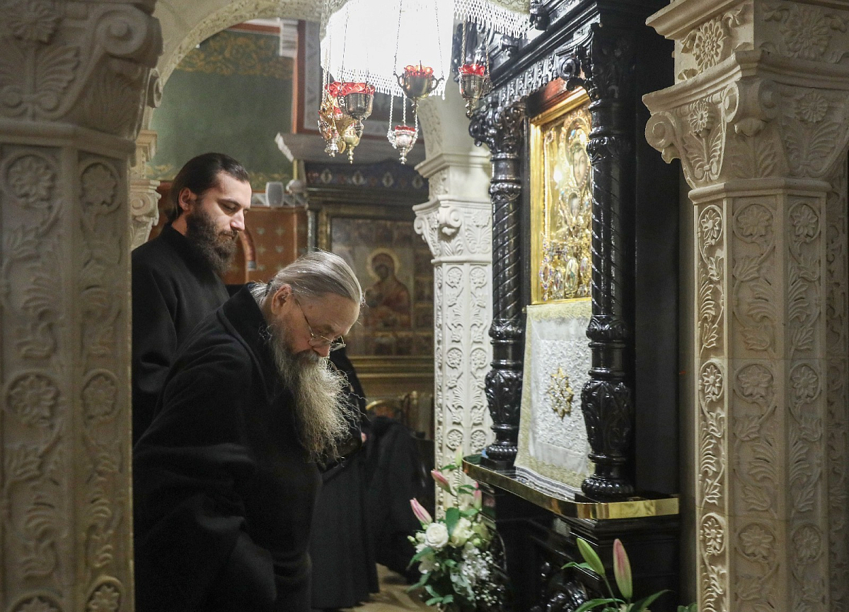 По окончании Литургии была совершена молитва преподобному Феодосию Великому перед иконой святого.