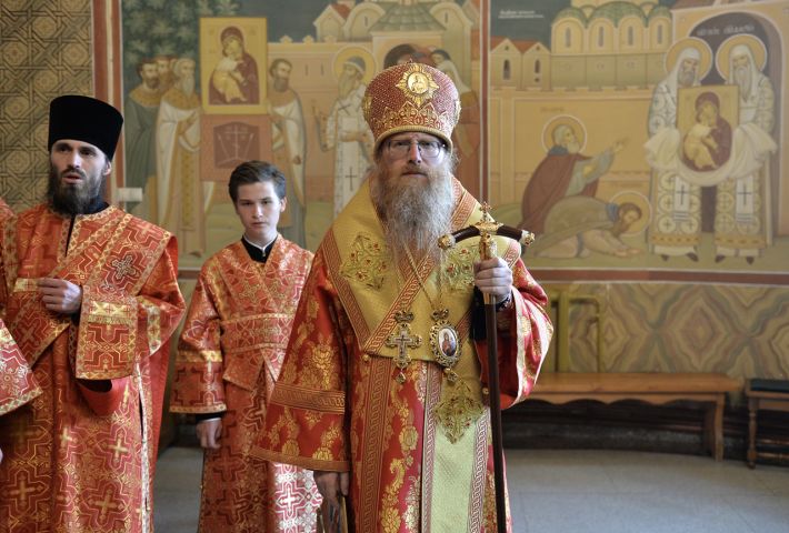 Его Преосвященству сослужила братия обители в священном сане.