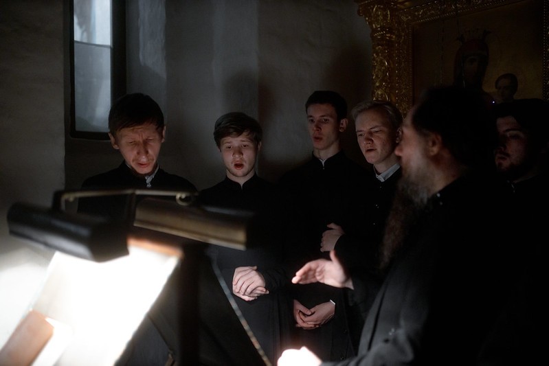 Богослужебные песнопения исполнил второй академический хор под управлением Виталия Чувилова и мужской хор Лавры под управлением иеромонаха Нестора (Волкова).