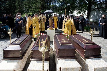 В Новокосине, в храме Собора новомучеников и исповедников Российских в полдень была совершена заупокойная лития по почившим инокам Спасо-Преображенского кремлевского монастыря, которую отслужил настоятель протоиерей Владимир Клюев и духовенство Патриаршего подворья. Затем святыня была доставлена в Данилов монастырь. После литии, в присутствии священноначалия, насельников монастыря и прихожан три ковчега были перенесены в поминальную часовню, где они будут находиться до августа, а затем в рамках мероприятий, посвященных 40-летию возрождения Данилова монастыря, состоится их перезахоронение в так называемой монастырской костнице.