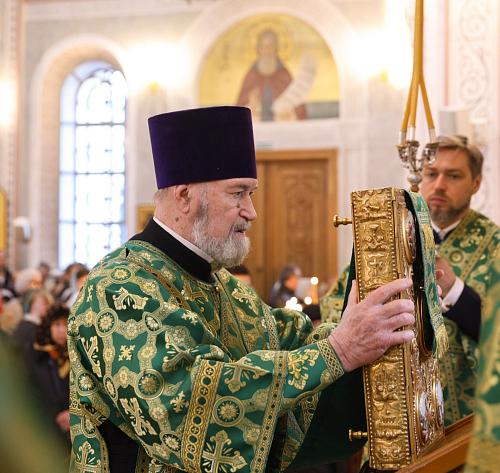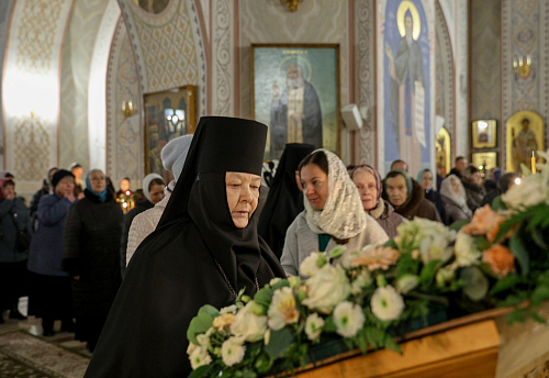В завершение архипастырь поклонился честным мощам преподобных схимонаха Кирилла и схимонахини Марии, Радонежских и Хотьковских чудотворцев.