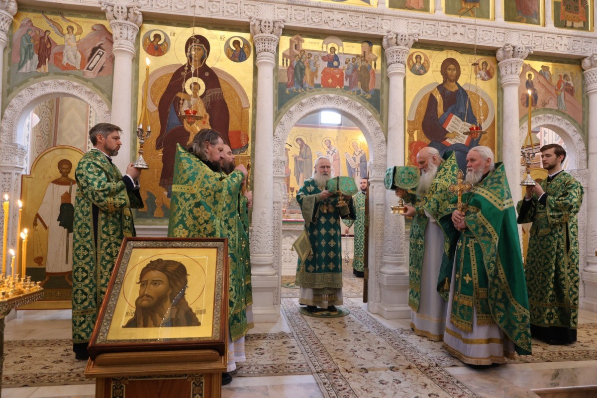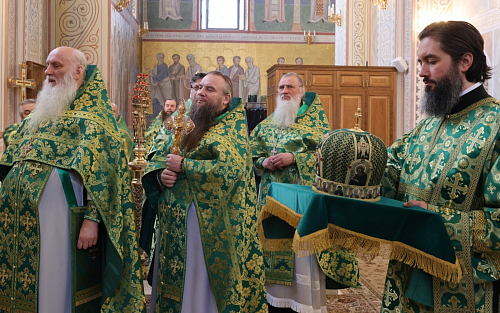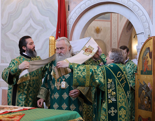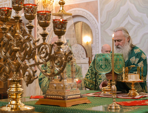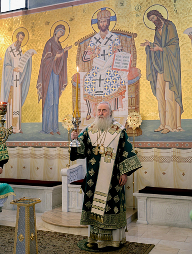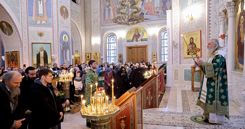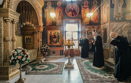 Его Высокопреосвященству сослужили клирики обители и гости из духовенства.