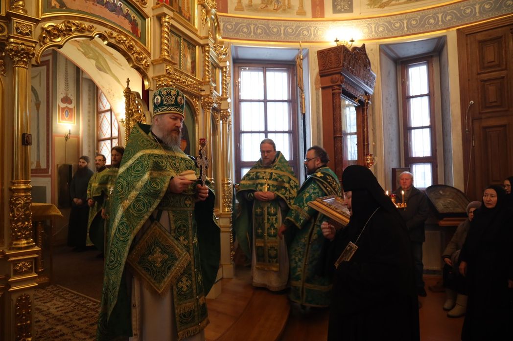 Накануне вечером в Борисоглебском пределе Троицкого собора обители было отслужено торжественное всенощное бдение с литией, на поклонение верующим был вынесен мощевик с частицами мощей святых преподобных Кирилла и Марии.