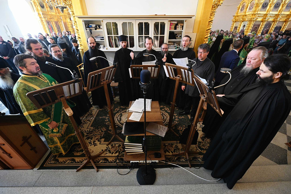 Церковные песнопения исполнил братский хор Соловецкого монастыря под управлением иеродиакона Афанасия (Савельева).